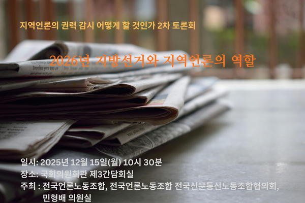 전국언론노동조합에서는 <지역언론의 권력 감시 어떻게 할 것인가> 지역언론 연속토론회 2차를 아래와 같이 진행합니다.