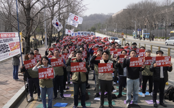 26일, 언론노조는 과천 방송미디어통신위원회 앞에서 ‘언론정상화 더 이상 미룰 수 없다!’ 언론노조 총력 결의대회를 열고, 작년 8월, 방송 3법이 통과된 이후 지금까지 방미통위 구성이 지연되면서 해결되지 못하고 있는 언론 현안 해결 촉구를 외쳤습니다. 이날 이호찬 위원장은 “방송3법 개정과 공영방송이 정치적 독립은 국민적 요구였고, 편성위원회 등을 통한 방송 민주화는 절실한 과제였다. 그러나 방미통위는 아직까지 출범하지 못했고 방송3법 후속조치는 단 하나도 이뤄지지 못했다.”고 목소리를 높였습니다. 이어 “내란 정권이 장악한 언론 정상화를 언제까지 미룰 것인가. 내란정권이 망쳐 놓은 언론 정상화의 시작은 방미통위의 출범”이라며 방미통위를 즉각 가동하도록 촉구했습니다. 언론노조는 결의문을 통해 “윤석열 정권은 몰락했으나, 그 정권이 남긴 상흔은 현재진행형이다. 공영방송의 뿌리는 흔들렸고, 지역방송과 미디어 공공성은 무너졌다.”며 “이를 시급히 바로잡아야 할 방미통위의 완전한 출범은 여전히 이뤄지지 않고 있다. 미디어 공공성이 파괴된 채로 방치될수록, 언론 정상화는 멀어지고 끝내 퇴행으로 귀결될 수밖에 없다.”고 경고했습니다. 언론정상화, 더 이상 미룰 수 없습니다!