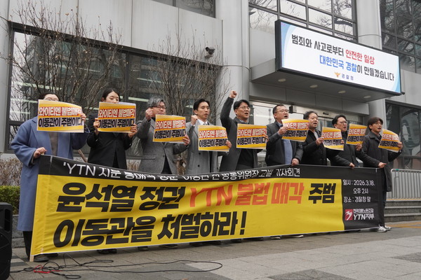 언론노조 YTN지부는 18일 서울 서대문구 경찰청 앞에서 기자회견을 열고 ‘YTN 불법매각’ 사태와 관련해 이동관 전 방통위원장을 직권남용 권리행사 방해 혐의로 고발했습니다. 지난 2월 국회 과방위가 진행한 방미통위 업무보고에서 이동관 전 방통위원장이 한전KDN과 한국마사회의 YTN 지분 통매각 사태에 관여했다는 사실을 보여주는 공문이 드러났습니다. 당시 이동관 방통위원장이 한전KDN과 한국마사회를 관리감독하는 주무부처에 두 공기업이 가진 YTN 지분을 묶어 전량 매각하는 것이 바람직하다는 공문을 보낸 것입니다. 방송의 독립성과 공정성을 지켜야 할 방통위가 윤석열 정권의 언론 길들이기 차원에서 이뤄진 YTN 사영화 과정에 관여한 셈입니다. 이날 이호찬 언론노조 위원장은 “윤석열 정권의 언론장악 설계자이자 YTN 불법 매각의 기획자로 판단되는 이동관 전 방통위원장의 책임을 분명히 묻기 위해 고발에 나섰다”며 “정권의 눈 밖에 난 YTN을 길들이기 위해 이뤄진 사영화 절차였기에 우린 유진그룹을 YTN의 최대주주로 인정할 수 없으며 YTN의 공적 구조를 회복하기 위해 투쟁할 것”이라고 덧붙였습니다.