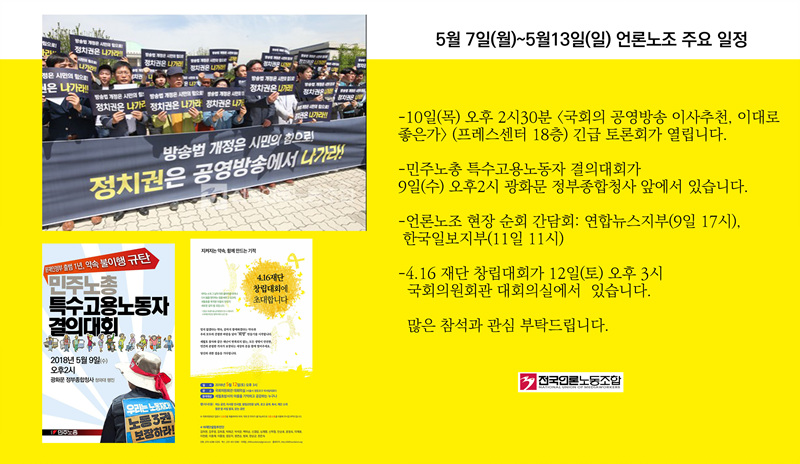 5월 7일(월)~5월13일(일) 언론노조 주요 일정
