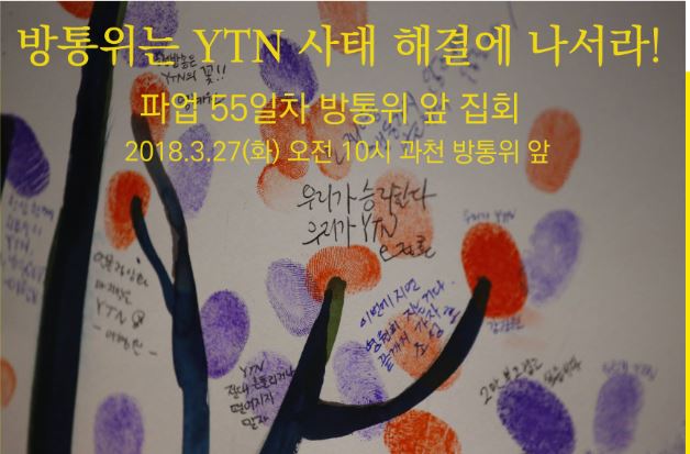 -YTN지부 총파업이 26일(월) 현재 54일차를 맞습니다. 27일(화) 10시 방통위 앞에서 파업 집회를 합니다. 많은 관심과 연대 부탁드립니다.