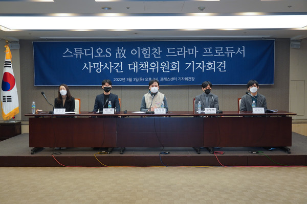 전국언론노동조합을 비롯해 언론노조 SBS본부, 한빛미디어노동인권센터, 민주노총법률원, 돌꽃노동법률사무소는 ‘스튜디오S 故이힘찬 프로듀서 사망사건 대책위원회'를 구성하고, 3일 목요일 2시 프레스센터 19층에서 기자회견을 열고 재차 사측에 ‘노사공동조사위원회' 구성과 참여를 요청했다. 유가족과 대책위는 공동조사가 무산될 경우 단독 조사를 추진할 예정임을 밝혔다.