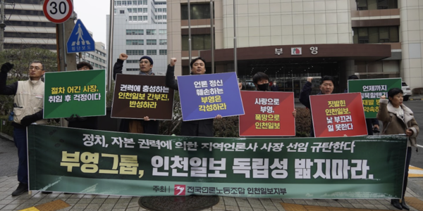이서후 지역신문노조협의회 의장은 “지역지 기자들이 적은 월급과 고된 노동에도 자부심을 안고 살아가는 이유는 저널리즘을 실현하고 있다는 믿음 하나 때문”이라며 “이것마저 사라지면 지역신문에서 일하는 의미가 없다. 지금 부영이 하는 일은 언론노동자들의 자존심을 무시하고 있는 일”이라고 비판했다.