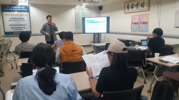 ■ 언론노조는 4월 15일, 언론노조 회의실에서 2023년 임금·단체협약에 대한 결과를 보고하고 2024년 임금·단체협약 지침안에 대해 논의하는 자리를 가졌습니다. 이날 참석해 주신 노조 대표자 및 임금·단체협약 담당자들은 박용철 노동사회연구소 선임위원님의 강의 ‘2024년 우리에게 임금이란 무엇인가?’를 통해 임금안 마련에 대한 기초를 다졌습니다. 이후 진행된 ‘2023년 임단협 결과 보고 및 2024년 임단협 지침안 논의'에선 언론노조에 속한 사업장들의 임단협 현황을 공유하고 올해 임단협 안을 고민하는 시간을 가졌습니다. 언론노조는 앞으로도 실용적인 강의 및 간담회를 진행해 지본부 집행부에 도움을 드리겠습니다!