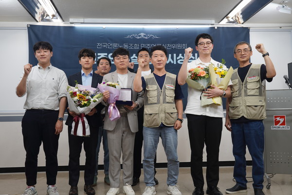 ■ 민주언론실천위원회는 2024년 6월 ‘민주언론실천상’ 수상작으로 시사IN <영일만 유전 탐사 업체 검증(주하은)>과 SBS <살아도 없는 존재 ‘무적자’(권지윤, 박하정, 손기준, 박재현, 김민준, 김지욱, 황인석, 장운석, 양지훈, 강시우, 오영택, 원형희, 이소영)>를 선정했습니다, 시상식은 7월 10일 열렸으며, 수상자들에게 상패와 상금을 전달했습니다. 수상자분들 모두 축하드립니다!