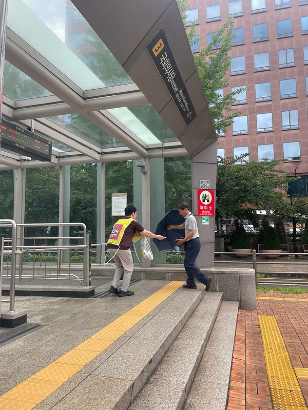 ■ 22일, 이진숙 방통위원장 후보 사퇴 촉구를 위해 60여 명의 본부·지부 집행부가 길거리로 나섰습니다. 국회의사당역, 여의도역, 신길역, 노량진역, 공덕역, 당산역, 합정역, 홍대입구역 일대에서 언론노조 조합원들이 이진숙 방통위원장 사퇴 촉구 서명 QR코드가 새겨진 물티슈를 시민들에게 나눠 주고, 피켓 선전전을 하며 이진숙 방통위원장이 사퇴해야 하는 이유를 알렸습니다. 장맛비가 쏟아지는 날이었지만 이진숙 방통위원장의 사퇴를 외치는 조합원들의 열정은 막을 수 없었습니다! 투쟁!