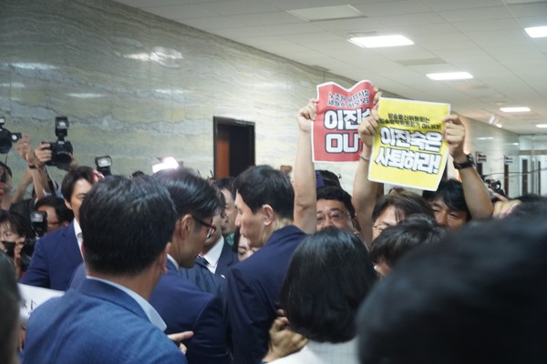 ■ 이진숙 방송통신위원장 후보의 국회 과방위 청문회가 시작된 24일, 언론노조는 청문회장 앞에서 이진숙 후보자의 자진 사퇴를 촉구했습니다. 이진숙 방통위원장 후보는 MBC 보도본부장 및 대전MBC 사장을 역임하며 정권의 언론장악에 꽃길을 깔아준 인물이기 때문입니다. 이날부터 이례적으로 사흘간 이어진 청문회에선 이진숙 후보자의 언론장악, 노조탄압, 법카 사적 유용 등 공직자 자격을 의심케 하는 혐의들이 무더기로 쏟아져 나왔습니다. 국민의힘은 청문회장 앞에서 사퇴 촉구에 나선 언론노조 조합원들을 고발할 방침이라고 밝혔으나, 이진숙 씨야말로 고발 대상입니다. 언론노조는 끝까지 정권의 언론장악에 맞서 싸우겠습니다.