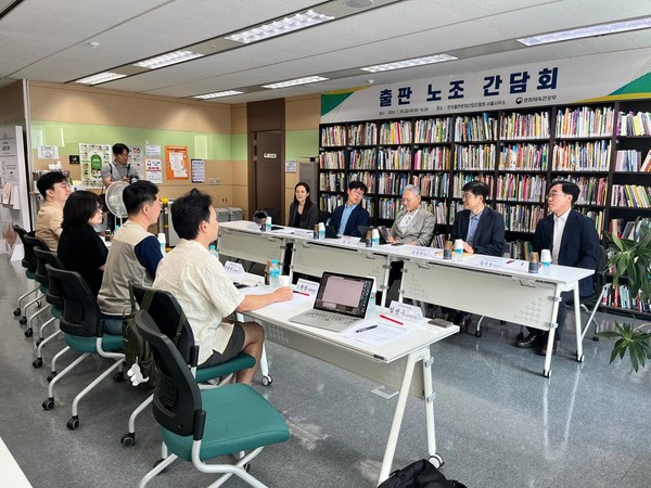 ■ 언론노조와 유인촌 문화체육관광부 장관이 26일 출판노동자의 노동조건 개선을 위한 간담회를 가졌습니다. 이날 간담회는 지난 4월 유인촌 장관이 세계 책의 날 행사에서 대화를 약속한 이후 3개월 만에 성사됐습니다. 간담회에 참석한 전대식 언론노조 수석부위원장은 “문체부와 국회 문체위, 언론노조, 대한출판문화협회가 모여 외주노동 표준계약서 문제 등을 함께 논의하자”고 요구하며, 출판 종사자들의 열악한 노동조건에 대해 설명했습니다. 이에 유인촌 장관은 “표준계약서 만드는 게 어려운 일이 아니니 서로 양보한다는 전제로 일단 시작해 보자”며 “표준계약서 문제와 출판종사자가 예술인복지법상 예술인 지위 인정 받도록 하는 문제부터 우선적으로 정리하자”고 의지를 보였습니다.출판 외주노동 표준계약서가 제정되는 날까지 열심히 달리겠습니다!