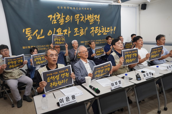 ■ 8월부터 검찰에 의한 통신이용자제공 사실을 통보받은 언론인, 정치인, 일반 시민 등의 수가 계속 늘어나고 있습니다. 이에 방송기자연합회, 전국언론노동조합, 한국기자협회, 한국방송기술인연합회, 한국영상기자협회, 한국PD연합회는 5일 검찰의 무차별적 통신 이용자 조회를 규탄하는 긴급 기자회견을 열고, 무차별적인 통신 정보 조회는 윤석열 대통령 한 명의 심기 경호를 위한 수사권 사유화, 언론 탄압, 국민 기본권의 침해라고 지적했습니다. 이날 기자회견에서 윤창현 언론노조 위원장은 직접 받은 통신이용자정보제공 사실 통지 문자메시지를 보여주며 “이런 사태가 과연 공정과 상식에 부합하는지 되묻지 않을 수 없다”고 비판했습니다. 이날 기자회견을 개최한 6개 언론현업단체는 기자회견문을 통해 “검찰의 통신정보 조회는 이전부터 벌어져 온 일이지만, 언론계와 정치권, 시민사회, 일반인들까지 망라한 3,000여 명이라는 숫자는 국가 권력 기관에 의한 유례없는 민간인 사찰로 규정할 수밖에 없다”며 “언론과 시민에 대한 무차별 사찰은 독재회귀의 명백한 물증”이라며 여당에게 국민의 기본권을 침해할 수 있는 전기통신사업법 관련 조항 개정에 나설 것을 약속하고 야당과의 협의에 즉각 착수할 것을 촉구했습니다.