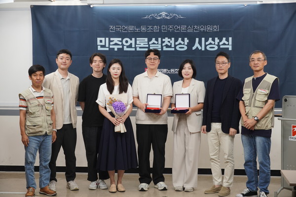 ■ 민주언론실천위원회는 2024년 7월 ‘민주언론실천상’ 수상작으로 MBC <‘살인적 노동’ 쿠팡(김현명, 이따끔, 장슬기, 차주혁)> 연속 보도와 미디어오늘 <이진숙 방통위원장 인사 검증(금준경, 박서연, 박재령, 윤수현, 윤유경)> 연속 보도응 선정했습니다. 시상식은 8월 14일 열렸으며, 수상자들에게 상패와 상금을 전달했습니다. 수상자분들 모두 축하드립니다!