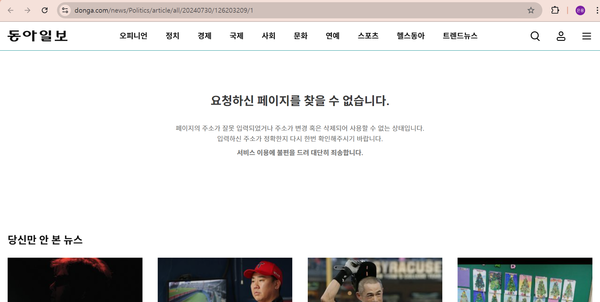 뉴시스 보도 전재한 동아닷컴은 기사 ‘삭제’