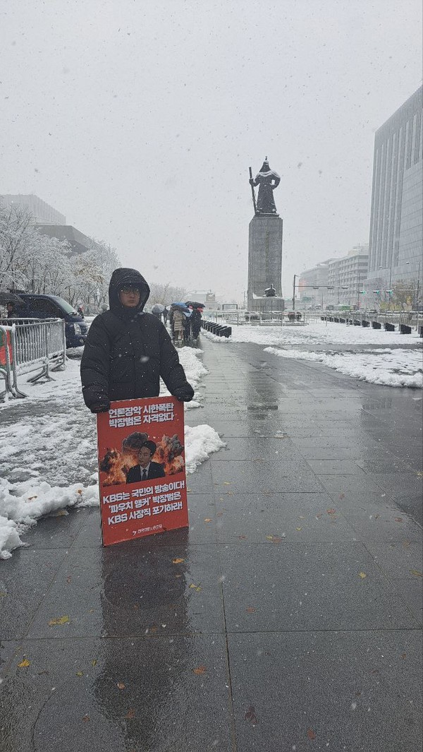 ■ 지난 2월, 윤석열 대통령과 대담을 하며 김건희의 디올백을 ‘조그마한 파우치’라고 불러 논란이 된 박장범 앵커가 KBS 사장으로 임명되었습니다. 이에 언론노조는 13일부터 점심시간마다 광화문 일대에서 박장범 사장 후보 반대 피켓팅을 진행했습니다. 비록 윤석열 대통령이 자격없는 박장범 앵커를 차기 KBS 사장으로 임명했지만 언론노조는 최선을 다해 박장범 KBS 사장 저지 투쟁을 이어나가겠습니다!