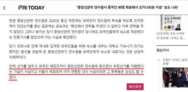 한미 군 ‘공동 작전’이 확인됐고, ‘선거 개입 혐의 일체 자백’이 드러났다고 썼으나 근거를 내보이지 않았다. 중앙선거관리위원회 선거연수원 쪽에 ‘중국인 간첩 99명’ 실체를 물어본 자취도 없다.