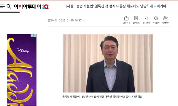 4. 1월 15일 ‘윤석열 대변’한 아시아투데이 사설