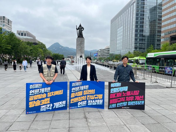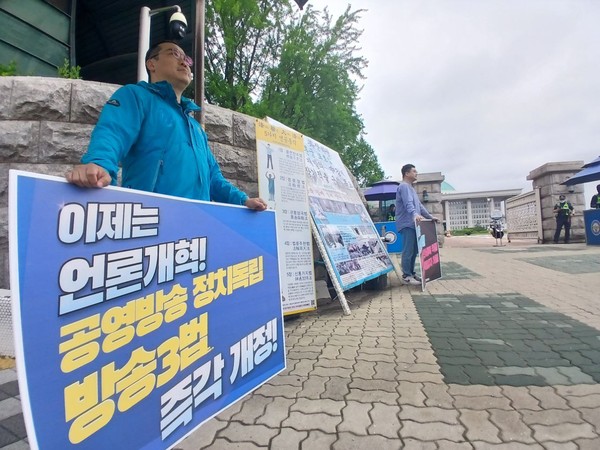 우선, 언론노조 KBS본부는 오늘도 국회 앞에서 윤석열 언론장악 진상규명과 방송3법 재입법을 촉구하는 피케팅을 했습니다.