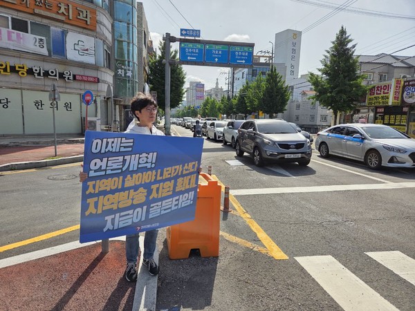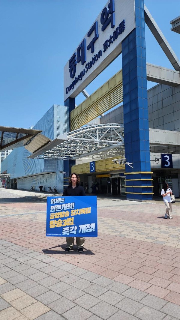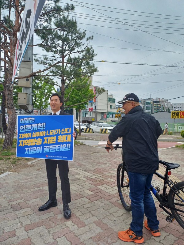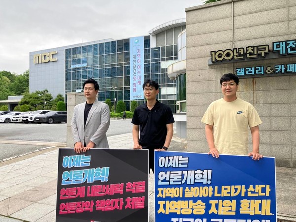 언론노조 MBC본부는 서울 상암동 MBC 사옥 앞에서 피케팅을 했습니다. 또 MBC본부 경남지부와 대구지부는 각각 진주와 동대구역에서 언론개혁 선전전을 이어갔습니다.