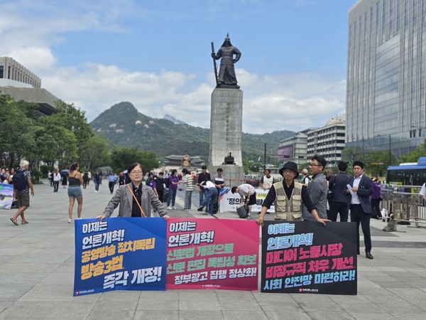 언론노조 YTN지부는 상암 YTN 사옥에서 언론개혁 촉구 피케팅을 이어갔습니다.