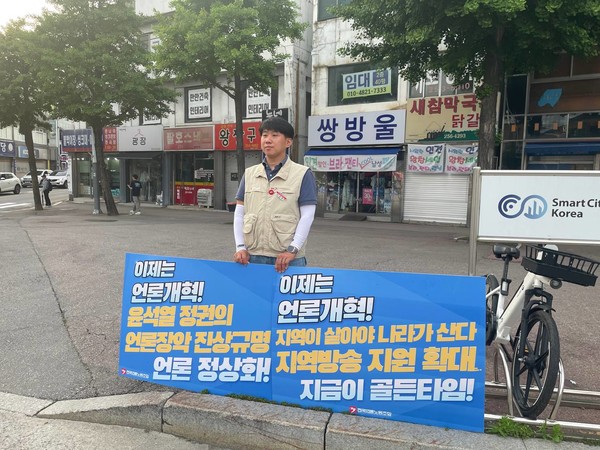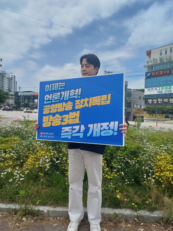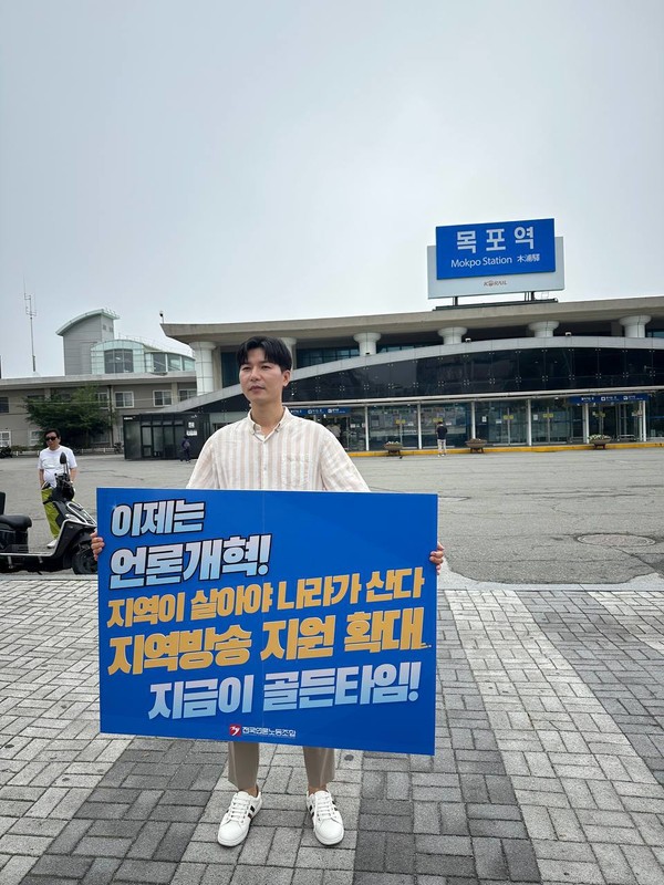 언론노조 MBC본부 목포지부는 목포역 앞에서, 언론노조 MBC본부 부산지부는 부산대학교 앞에서 언론개혁을 촉구했습니다.