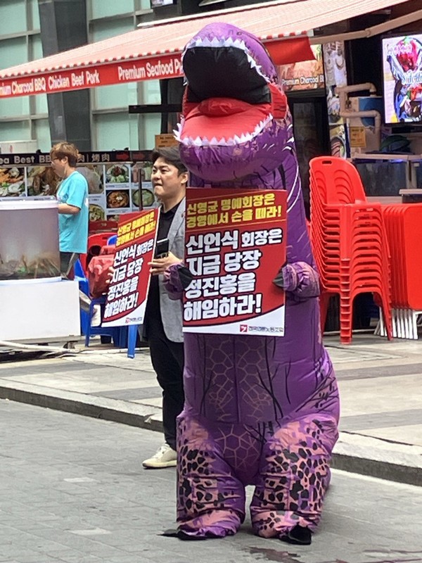 한편, 언론노조 JIBS제주방송지부는 오늘도 JIBS제주방송 대주주인 (주)한주홀딩스 본사 앞에서 신영균 (주)한주홀딩스코리아 명예회장을 규탄하는 피케팅을 진행했습니다. 노조 탄압, 폭언 및 직장 내 갑질, 단협 위반 등의 행위를 일삼은 정진홍 JIBS 대표이사의 퇴진을 촉구하기 위함입니다.