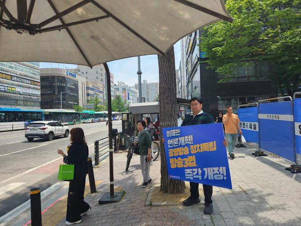 언론노조 EBS지부도 길거리에서 피케팅을 하며 언론개혁 7대 과제를 알렸습니다!