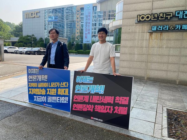MBC본부 지역지부는 오늘도 역시 힘차게 피케팅을 진행했습니다. MBC본부 울산지부, 대전지부, 충북지부, 포항지부, 대구지부, 여수지부, 춘천지부는 출근 시간과 점심 시간에 피케팅을 하면서 시민들에게 언론개혁 7대 과제를 알렸습니다.