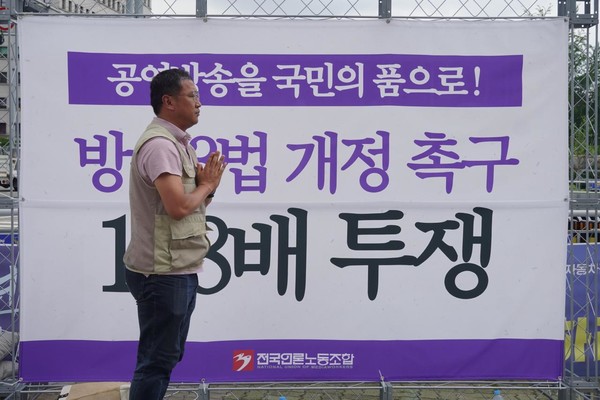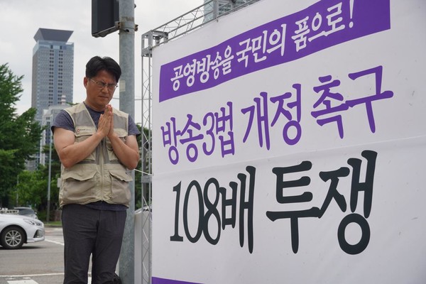 전국언론노동조합(언론노조)이 방송3법 즉각 개정을 촉구하는 108배에 돌입했다.