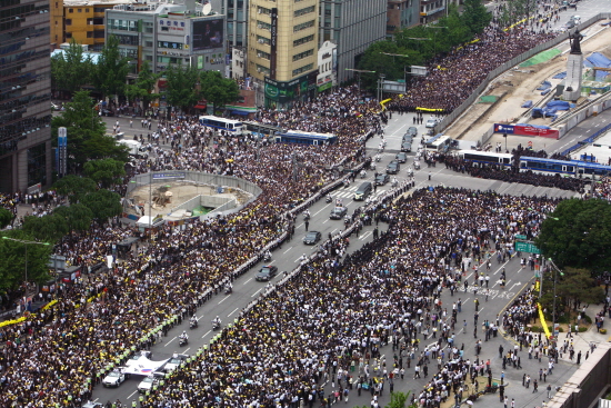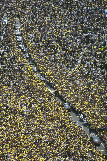 ◇닫힌 광장 열렸다=지난 6일 동안 열리지 않았던 서울 광장이 열렸다. 아니 지난 5월1일 이후 공권력에 의해 열리지 않았던 광장에 사람들이 모여들기 시작했다. 노란색 햇볕 가리기와 노란색 손피켓 등을 들고 사람들은 ‘민주주의 사수’와 ‘독재 타도’를 이야기할 준비를 하고 있었다.