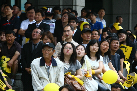참여 민주주의에 비켜 서 있었던 사람과 그로 인해 노 전 대통령을 지켜주지 못한 사람, 폭력에 촛불 광장을 빼앗겼던 사람, 약탈적인 경쟁에 스스로를 내 몰고 자신의 아이들까지 합류시킨 사람, 약자들의 고통을 외면하다 결국 망루에 올라가게 만들었던 자신들에 대한 반성이 국화와 촛불 그리고 종이학, 노란 리본, 대자보를 통해 전해졌다. 그리고 현 사태의 보다 직접적인 원인을 만들어 냈던 이명박 정부와 검찰, 그리고 조중동을 비롯한 왜곡된 언론에 대한 비판과 각성, 심판하자는 현수막과 유인물이 덕수궁 돌담길을 가득 채웠다.